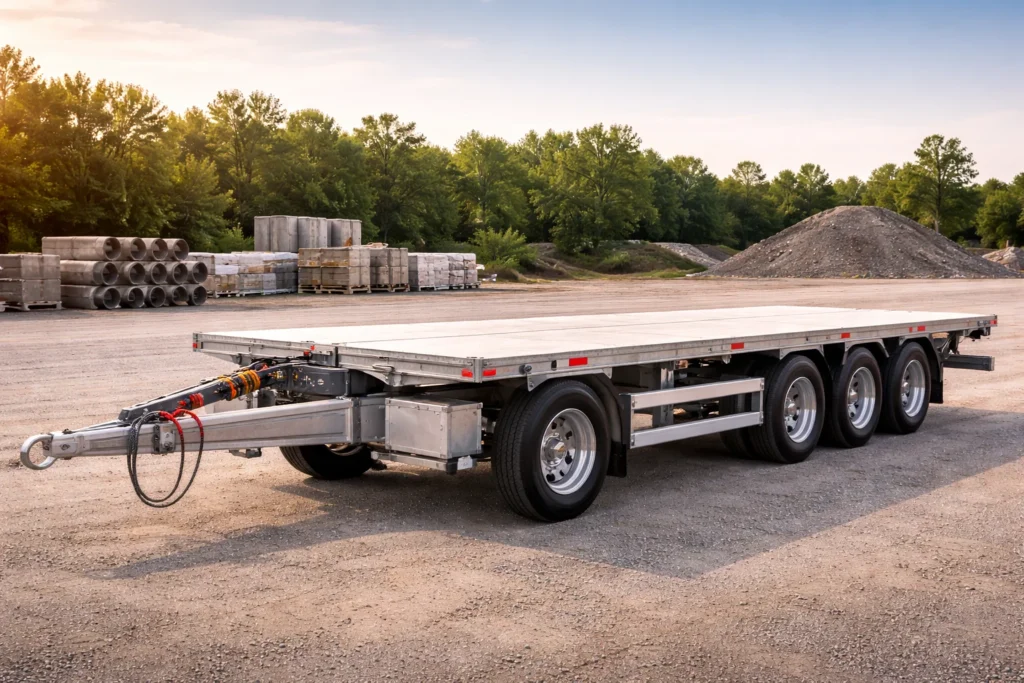A versatile trailer designed for hauling heavy equipment and cargo safely and efficiently across diverse terrains.