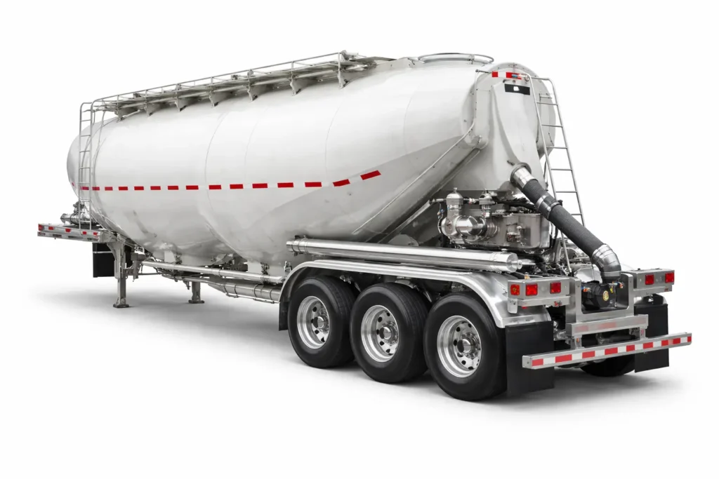 A specialized trailer designed for transporting bulk cement safely and efficiently to construction sites.