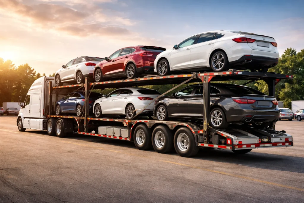 A trailer designed for transporting vehicles safely and efficiently over long distances.