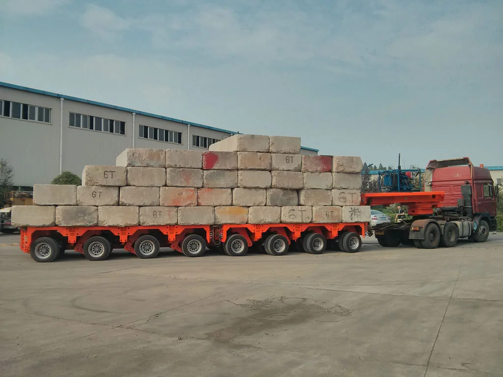 A multi-axle trailer system designed for transporting extremely heavy and oversized cargo, allowing flexible configurations to safely handle loads of varying sizes and weights.