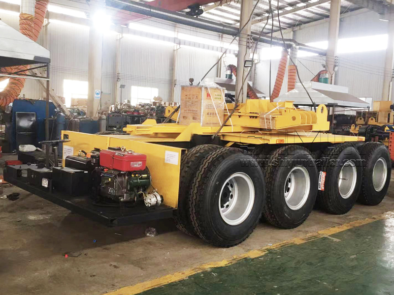 A specialized transporter designed for moving large and heavy shipyard components safely and efficiently in demanding environments.